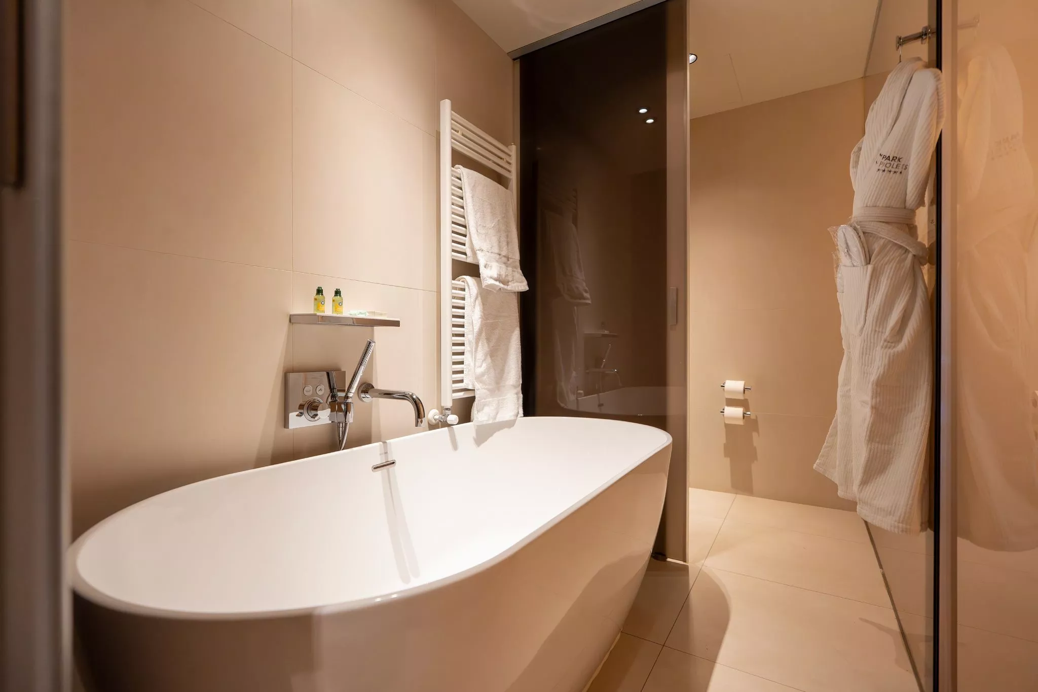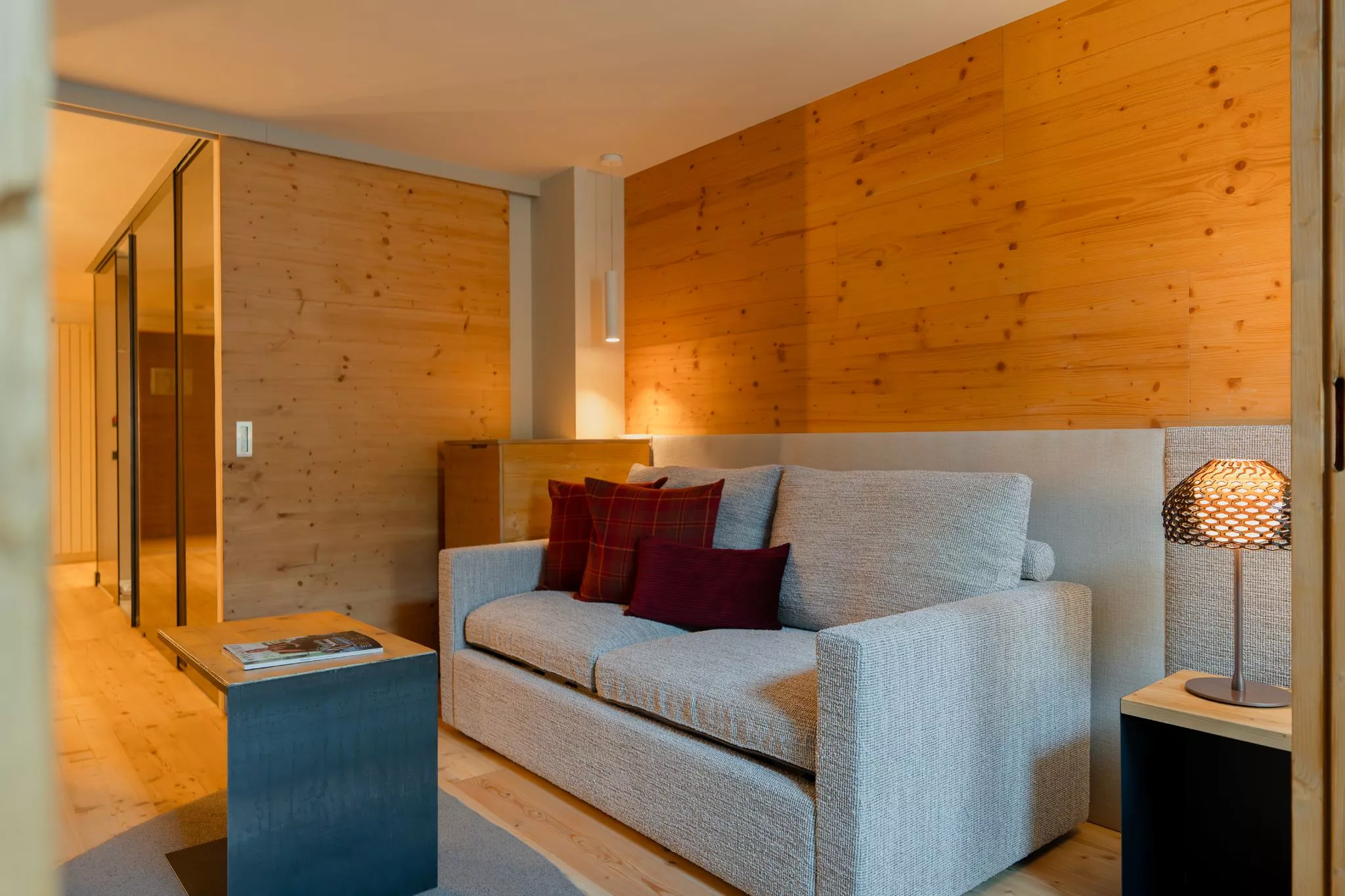 Exclusiva habitación con un exquisito interiorismo en madera, piel y tejidos nobles. Nuestras únicas 3 habitaciones Junior Suite cuentan con una gran terraza equipada con un confortable y elegante mobiliario para disfrutar de impresionantes vistas a la montaña. Disponen de cuarto de baño completo, con WC independiente y bañera.